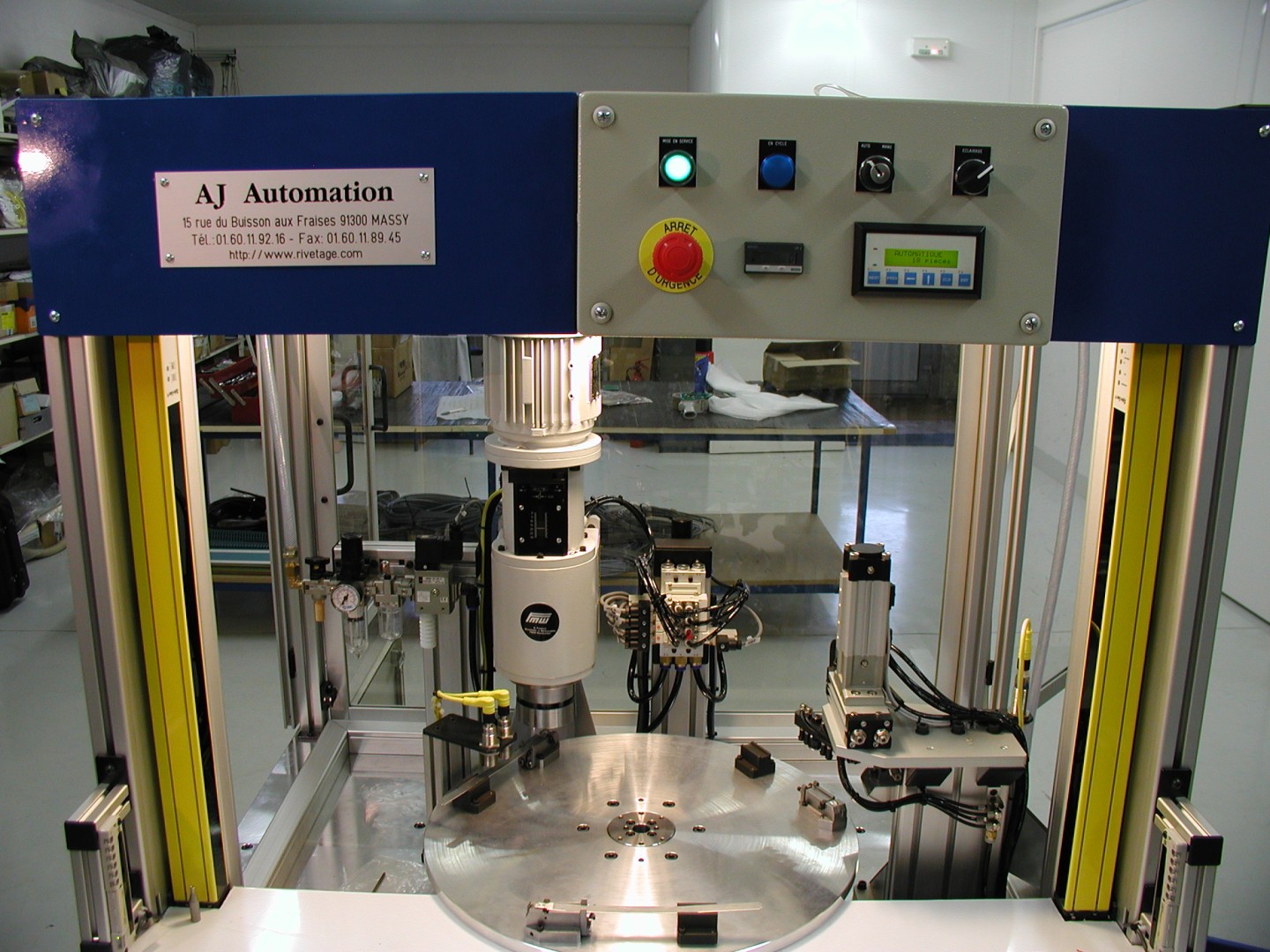 Descriptif technique Broche de fluage radial Semi automatique : chargement manuel Protection par barrière immatérielle de sécurité. Évacuation par manipulateur Cadence: 1800pièces/h , Production en 3x8